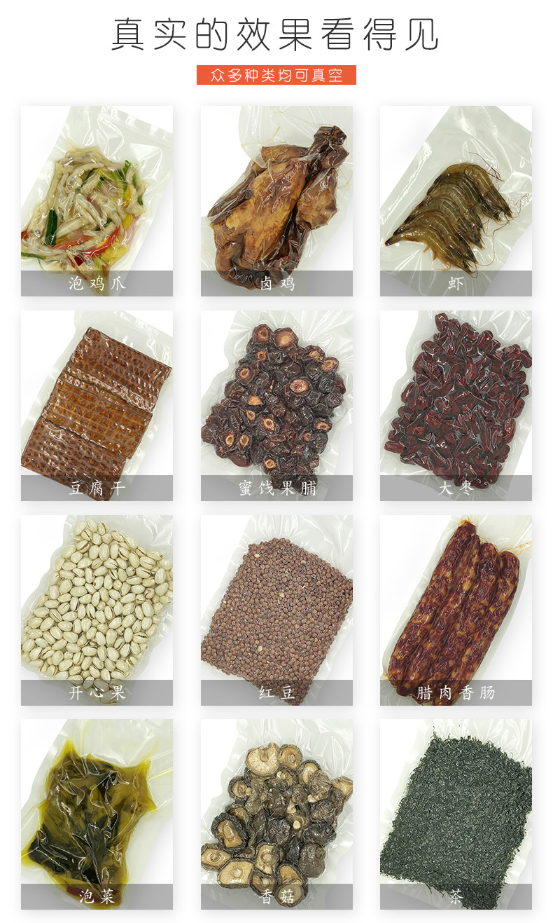 全自動真空包裝機,減少人力,提高產(chǎn)能,適合中、大型工廠使用。采用了微電腦控制技術,工作時間更加準確,抗干擾能力更強,性能更加穩(wěn)定。機器只須按下真空室蓋即可自動按設定的程序完成抽真空、封口、印字、冷卻和排氣的全過程。經(jīng)過包裝后的產(chǎn)品可防止氧化、霉變、受潮,可保質(zhì)和保鮮,延長產(chǎn)品的儲存期。