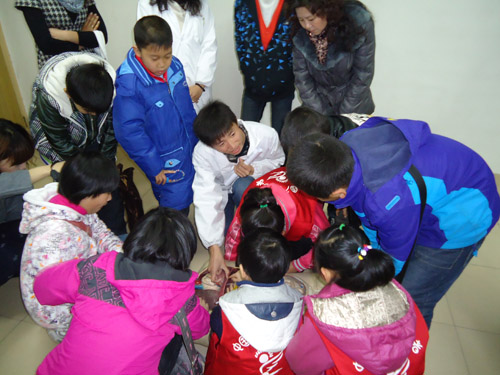 在动物标本室中,小学生们被各种动物标本吸引,围在解说员周围仔细聆听。对于人的各个时期胚胎、中华鲟、鳖等标本的特征和部分动物的生活习性等问题,解说员给小学生们做了详细的介绍。“中华鲟不是国家二级保护动物吗,你们怎么用来做标本啊?”“世界上最大的鸟是什么鸟?”小学生们的各类提问层出不穷。解说员的回答也轻车熟驾。活动在一问一答的互动中达到高潮,充分展现了小学生们丰富的课外知识和强烈的求知欲。