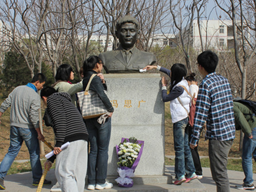 劲松荫细草,深深缅烈情。为使同学们珍惜今天的幸福生活,弘扬爱国主义精神,树立正确的人生观和价值观,值清明节到来之际,3月30日下午,生命科学学院举行了纪念冯思广同志的活动,学生会部分骨干成员来到冯思广同志纪念像为冯思广同志扫墓。