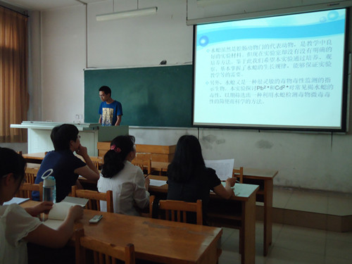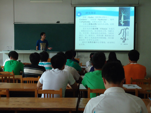 参与答辩同学以小组展示ppt方式进行。各组选派一名代表对相关课题进行讲解,主要内容围绕项目研究背景及意义、实验材料、实验过程、研究结论等展开。本次答辩项目共13个,包括《利用转基因技术培育抗旱白菜的研究》、《重金属汞对拟南芥原生质体活性氧自由基和钙离子的影响研究》、《水稻转化体系建立的初步探索》等。