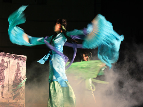 “把昨天都作废,现在你在我眼前……”一曲悠扬动听的《偏爱》推动了动漫节的进程。Cos舞台剧《仙剑奇侠传4》新鲜出炉,演员刚露面,台上台下掌声一片。演员精致炫彩的演出服惹人眼球,优美动听的歌曲让观众大饱耳福,演员精湛的演技将一个个凄美动人的爱情故事演绎得出神入化。接下来,淄博市职业学院的学生又给我们带来了异彩纷呈的《火影忍者》舞台剧。舞台上,演员们武打动作洒脱利落,一招一式都表现得得心应手。而后,双树园动漫社为大家带来了极富异域风情的Cosplay表演《黑塔利亚》,搞笑逗乐的动作,时尚雷人的语言,演员们将这部网络小说活灵活现地展示在观众面前。接下来的时间里,好戏连台,精彩不断,演员们又给观众奉献出了清心悦耳的日语歌曲,可爱动听的动漫歌曲,流彩纷呈的东方project等节目。最后,此次文化节在观众热烈的掌声中落下帷幕。