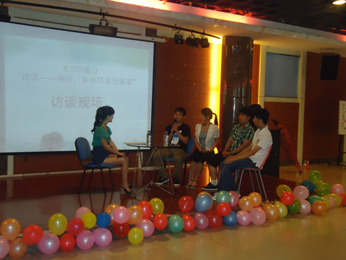 此次访谈主题为:“访谈——倾听,争做环保后备军”。大学生作为祖国未来环保事业的后卫军,在人类面临的环境危机面前,积极主动地提高自身环保意识已成为一种责任。