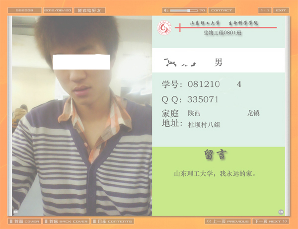 为营造“温情母校.温情学院”,生命科学学院在毕业季为所有毕业班级推出《毕业纪念册》。该纪念册通过电子杂志的形式,将全班同学的毕业感言、个人图片、联络方式等整合在一起,非常具有纪念意义。
