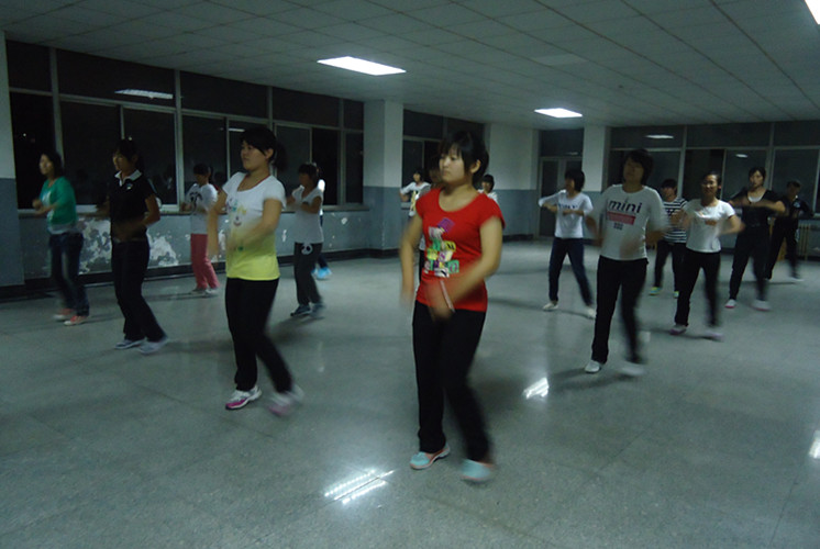 我院健美操训练在13号教学楼南北厅进行,参与者40多人,训练的总体事宜由我院学生会文艺部策划组织。训练前期,学院展开宣传,主要面向大一、大二女生招募队员。各班同学均踊跃报名,积极参与,健美操训练拉开序幕。