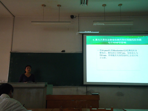 张秀珍博士题为《中药成分协同作用抑制胃癌细胞增殖》的学术报告着重向我们介绍了一种治疗胃癌的新方法。癌症也叫做恶性肿瘤,特点为生长失控且具有转移性,我国每年死于癌症的患者达150万人,患者1600万人,传统治疗方式为手术,辅以放疗和化疗。传统中医使用的中草药很多具有抗癌性,中药积累了丰富的药物配伍组合经验,应用化学信息方法进行整体分子相似性比较,筛选出黄连和吴茱萸这两味中药。进一步在中西药数据库对比,采用小檗碱和柠檬烯组合研究,这两种药物在啮齿类生物模型上具有良好的抗癌效用。将人胃癌细胞在体外进行培养,然后经过一阶段的实验以及统计分析,分对小檗碱、柠檬烯对胃癌细胞的作用做出讨论,它们单独使用或者按比例混合均可以起到理想的效果,当使用剂量在一定范围内,两者呈现协同作用,超出范围之后才会表现出拮抗作用。张秀珍博士对联合作用药物减少指数DRI、促进胃癌细胞凋亡、对胃癌细胞周期影响、产生活性ROS、减少胃癌细胞线粒体膜电位MMP、抗凋亡蛋白Bal-2以及Caspase-3表达影响作出解释。