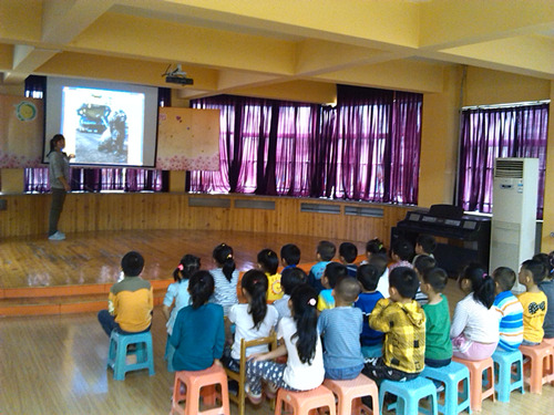 志愿者们经过充分准备,带着准备好的环保短剧、ppt、儿歌等一系列形式多样、内容丰富的节目,给三之三幼儿园的孩子们呈现了一场浅显易懂、活泼生动的环保宣传活动。