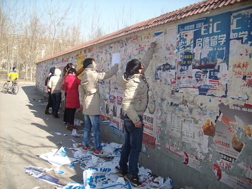 活动中,尽管天气很冷,但是每位志愿者都干得特别仔细。他们认真地揭下每张新张贴的宣传单页的同时,又用小铲子轻轻地铲掉已贴在墙面上很久的一些,深怕铲掉墙皮。其中一位志愿者说:“以前看到别人在墙上乱贴宣传单页,自己会主动走过去说两句,但是现在看着好多人都肆无忌惮地随意张贴,也慢慢习惯了。看到这次学校组织这次活动,我就毫不犹豫地报名参加了,因为我也想为创建文明校园做贡献!”这应该就是每位志愿者的共同心声。最后,他们将一些较为完整的宣传单页收集起来,打算回收利用。