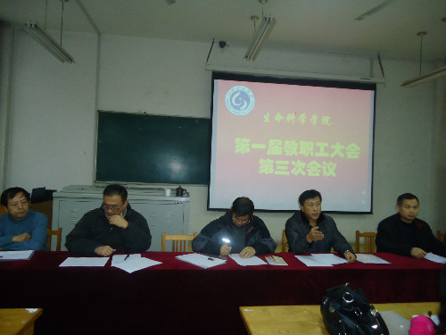 12月27日下午,生命科学学院在13号教学楼215室召开第一届教职工大会第三次会议。校工会常务副主席宫元海出席会议,会议由学院党总支书记钟玉涛主持。