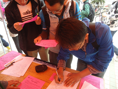 宣传期间,我院学生会成员做足准备,活动负责人认真指挥,宣传工作有条不紊。各工作人员早早将条幅、展板等宣传工具放置到位,耐心等待同学们的咨询。相关工作人员热情地为前来咨询的同学发放传单并细致地向其讲解活动事宜,同学们纷纷驻足并积极参与报名,宣传现场气氛热烈。