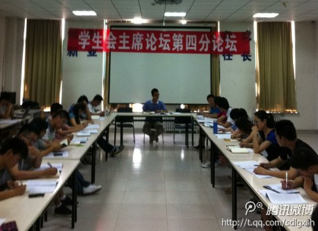 为了深入贯彻十八大精神及我校第二次双代会精神,6月16日,由校学生会主办的第三届学生会主席论坛在团委第二会议室举行。校团委副书记高静静、校学生会主席团成员、各校级学生组织主要负责人及各学院学生会主席团成员参加了此次论坛。