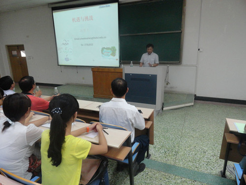会议伊始,王书记代表学院和在校生表示对2013级新生的热烈欢迎 。会上,赵博生院长发表讲话。为解决新生对专业的疑惑,增加对学院的了解,赵院长以“机遇与挑战”为题,从三方面致辞:他指出当前世界所面临的问题为生命科学的发展提供了机遇,而这个机遇也为学生提供了美好的就业前景。之后赵院长重点向学生介绍了威廉概况,对师资力量和教学体系方面都做出了详细的说明。他希望学生能秉承战斗精神,弘扬团结严谨、求实创新的院风,努力构建实践教学体系,坚持与国际接轨,建一流学院。同学们应提高自身能力,使自己成为基础厚、能力强、具有国际视野和创新精神的高素质人才。最后,赵院长提出了对新生的寄语与期望:1.树立目标,规划人生;2.培养兴趣;3.大学学习应该做到博学之、审问之、慎思之、明辨之、笃行之;4.坚定信念,自强不息;5.有责任感和感恩之心;6要.乐观、懂礼,有团队精神。同时希望大家能切实践行英国威廉集团“厚德 博学 笃行 至善”的校训,有意义的过好大学的每一天。