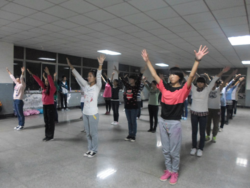 该院文艺部负责健美操训练,每晚,13号教学楼二楼都会响起动感有力的节奏,同学们满怀激情和热情努力训练着,大一新生从刚开始的零基础到现在,已基本掌握了各部分动作要领,在二、三年级同学的带领与指导下,进步亦突飞猛进。几遍健美操跳下来,衣服便被汗水湿透,疲累感阵阵袭来,然而同学们异常积极,休息时不少同学仍一遍又一遍地练习。健美操是力与美的结合,经过几天刻苦的训练,我院健美操团队已渐出成效,与昔日相比取得了很大的进步,虽然存在着不足之处,但同学们都刻苦努力不懈怠,力求将动作做到完美。