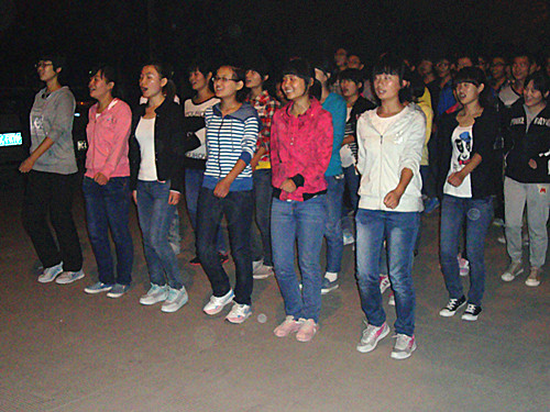 每日华灯初上时,参加训练的同学已经在训练场集合完毕,开始为运动会做准备。方阵训练由该院学生会自律部负责。经过一段时间的磨合,众位同学之间已经配合得相当默契,偶尔出现的一点瑕疵也能及时改正。齐步走、正步走虽然看似简单,却包含了同学无数的努力与汗水。训练时间一长,同学们明显露出疲惫的神色,此时,负责训练的人员便鼓励大家“你们将代表学院在大家面前展现风采,你们代表的是学院的精神面貌,即使再苦再累也要坚持下去。”同学们以认真的态度、刻苦的精神努力训练,为院争光。