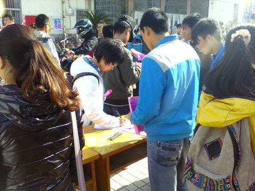 中午,在三餐门口,社团人员早早来到宣传地点,将宣传横幅、展板、宣传台等物品安置就位。经过会长简单的安排后,集邮爱好者协会会员们明确了自己的任务,个个情绪高涨,随后,会员们各自捧着宣传单页走向人群密集区,每当有学生从会员身边走过时,都会有宣传单页被递上。一些感兴趣的学生来咨询相关活动问题时,会员进行了详细的解说,对活动如何进行、何时举办等相关问题作了解说。