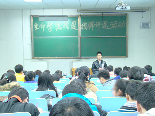 阳光普照,园丁心坎春意暖;雨露滋润,桃李枝头蓓蕾红。11月14日晚,生命科学学院在5号教学楼201教室举行“我爱我师”评选活动,参加评选的有院学生会全体成员以及各班学生代表,学生会主席林凯主持了本次活动。