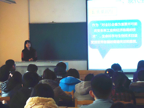 首先,庞秋香博士向大家介绍了现代生物技术的定义,她指出现代生物技术是对全社会最为重要并可能改变未来工业和经济格局的技术,受到世界各国普遍关注和重视,以此激发生命科学学院学生对专业的学习热情。庞秋香博士从国民经济,科技发展,国际地位,人民生活等四个方面讲了生物技术的实际应用,这种贴近生活的讲座方式让同学们听得津津有味。接下来,她向大家介绍了生物技术发展的不同阶段,并列举了利用基因工程获得优良动植物品系,继而获得产品的方式。同时,庞老师指出生物技术是解决人类面临的问题和挑战的有效途径。通过庞老师对生物技术在农业、食品、环境、医药等方面应用的介绍,同学们意识到生物技术领域拥有广阔的市场前景,增强了对本专业学习的信心。与此同时,大家更意识到应该加强自身道德素质修养,只有以此为基础才能对人类社会贡献出一份正能量。