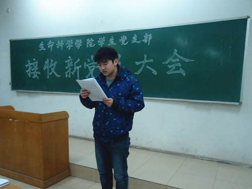 本期党员发展对象在党支部全体成员的注视中,郑重宣读了入党志愿书,他们详细地向组织介绍了自己的个人情况、个人经历、家庭与社会关系情况,并表述了自己的入党志愿,充分阐述了对党的深刻认识,同时表达了入党的坚定信念。他们纷纷表示,今后将在自己的学习和工作岗位上发挥党员的先锋模范作用,完成自己的各项任务,并且将党的指导思想落到实处,全心全意为人民服务,争取早日成为一名正式的共产党员。最后经支部党员举手表态一致同意接收这十名预备党员,对生命科学学院学生党支部在今后的发展上更有效地充实了力量。会议临近结束,许燕飞老师对党员发展对象们提出了几点期许,希望他们在平时的学习生活中发挥好带头作用,严于律己,遵守校纪校规,同时要搞好学习,争取不断发展。