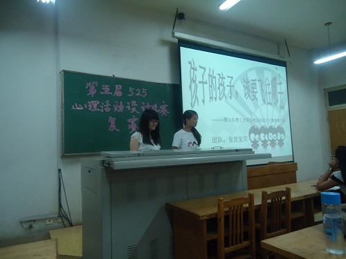 此次比赛共有十支队伍进入复赛。每一支队伍按照抽签的次序进行PPT的演讲,他们用精美的PPT向同学们展示了自己设计的心理活动,从活动中我们可以看到孩童的纯真,团结的友谊。同时,通过这些心理活动也拉进了人与人之间的距离,爱在指尖,用爱交流。选手演讲结束后,有学生会成员组成的评委团对每一支队伍都进行了点评,既提出了他们的不足,也对他们表示了鼓励。