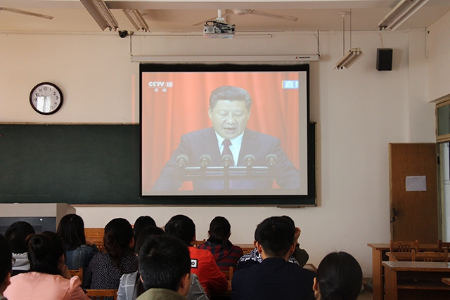 10月21日上午,生命科学学院党总支副书记王建兴、团总支书记李兰晶、辅导员翟静涛以及学院全体学生党员在13号教学楼201教室共同观看了“纪念红军长征胜利80周年大会”直播。