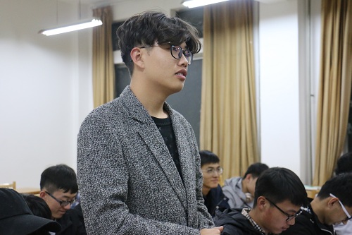活动开始,郇旭升通过一个视频短片向各位团员们传达了团中央关于开展一学一做教育实践活动的通知,并对一学一做的具体内涵作了详细的介绍,让各位团员对“一学一做”有基本的了解和认识。而后,又从为什么学和学什么两个方面带领团员们深入学习。首先是为什么学,郇旭升以提问的方式与团员们进行交流,让每位团员都充分表达自己的观点。通过两例学生犯罪事例告诉团员们树立正确青年观的重要性,学习总书记讲话的必要性。然后是学什么,通过介绍优秀青年代表的先进事例带领团员学习了总书记五个方面的重要要求和“勤学、修德、明辨、笃实”的八字真经。活动最后,郇旭升对活动进行总结,并要求每位团员撰写一份学习心得来加深理解,增强学习效果。