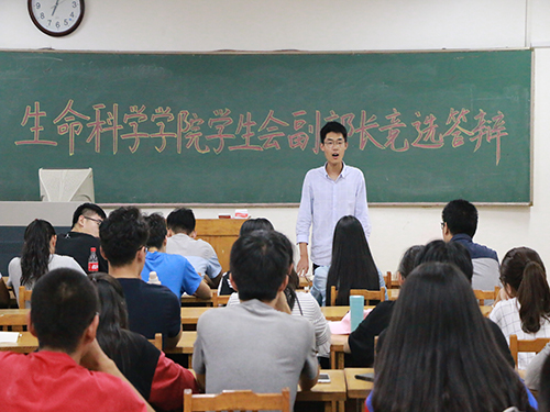 为保证学院学生会工作的连续性,促进学生工作的规范性,加强学生政治思想教育的时效性,9月18日晚,生命科学学院于13号教学楼215教室举行第十五届学生会各副部长竞选答辩,学生会主席团及部长担任评委,多位学生会干事参加此次竞选答辩。