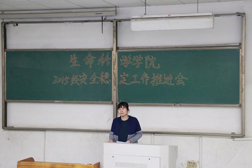 11月1日下午,生命科学学院在5号教学楼101室举办了2015级安全稳定工作推进会。此次会议由辅导员蒋育忻主持,2015级全体学生参加。