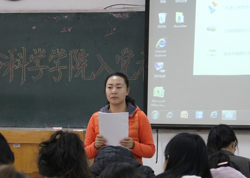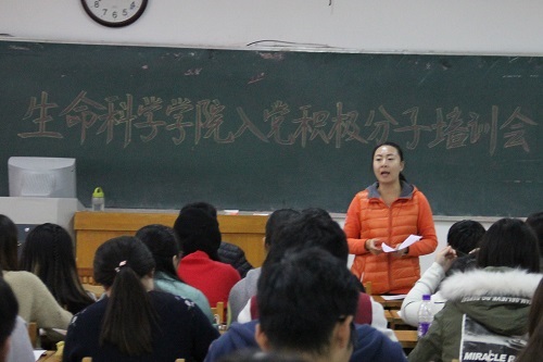 11月9日下午,生命科学学院入党积极分子培训会在13号教学楼218室召开,此次会议由团总支书记李兰晶主持,学院全体入党积极分子参加。