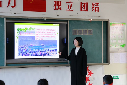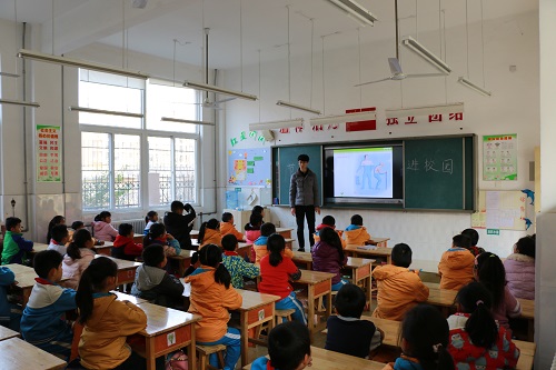 志愿者进入傅家镇中心小学,学校老师首先对志愿者的到来表示热情的欢迎。随后,志愿者们在老师的带领下,怀着激动和紧张的心情走进教室,小朋友们早已做好了认真听课的准备。