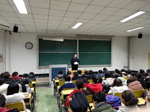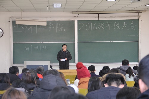12月26、27日,生命科学学院组织召开期末年级大会,对期末考试及元旦放假等事宜做集中安排部署,2016,2017年级全体同学参加会议,辅导员老师翟静涛主持进行。
