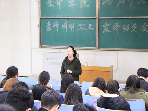 3月7日,生命科学学院在5号教学楼201教室召开2018届毕业生考研调剂、就业宣讲动员大会。此次大会由辅导员李兰晶主讲,2018届全体毕业生参与其中。