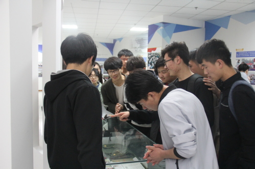 参观过程中,讲解员按照时间顺序,将学校的发展历程分“艰难初创时期”“文革十年时期”等几个关键时期进行讲解。班级成员认真听取了讲解员对于各个展柜的细致介绍,并不时在珍贵的馆藏物面前驻足观看。尤其来到冯思广烈士专柜前,大家显得格外兴奋激动,纷纷围在专柜前瞻仰交流。