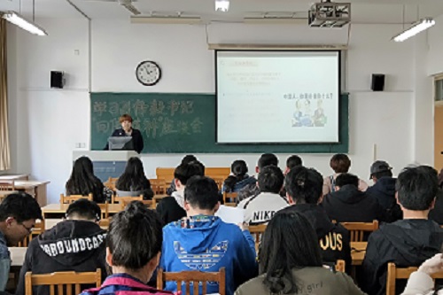 会议伊始,李娇娜向同学们强调了学校在第三次党代会后贯彻的“五有”人才的培养目标,由五有人才中的“有社会责任”引出了吕传毅书记在回信中提到的山理工人有责任和担当的代表。他们中有为了捍卫人民生命财产安全而舍生取义的“全国见义勇为模范”冯思广;有不畏强暴,勇斗歹徒而身中九刀的“全国见义勇为道德模范”宋彦峤;也有为人师表,克己奉公的“全国优秀教师”唐乐群。在介绍完相关事迹后,李娇娜讲道,在当今社会,我们身为一个大学生,更应该成为一个有社会担当,能承担起一定的社会责任的人。