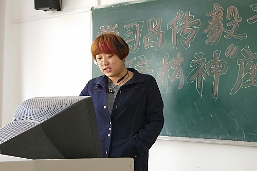 随后,“冯思广班”班长赵鹏上台进行了发言。在发言中,他向同学们介绍,为了能够从众多竞争选手中脱颖而出,他们整个班级集体所作出了许多努力。同时,赵鹏也向同学们进一步诠释了冯思广“奉献,执着,担当”的精神的深度内涵。