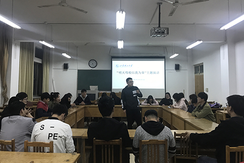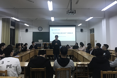 活动伊始,王新月分享了“为《理工人的南极故事》打call!”的微信文章,并向同学们介绍了我校2012届的优秀校友王志良的事迹。随后,团支部开展“明天母校以我为荣”主题演讲,团支部成员踊跃参与,团支部成员郑善民从“我们在优秀校友身上能学到什么”的角度,讲述了冯思广等优秀校友的事迹,提出了“为了明天能让母校以我为荣,我们今天应该怎么办”的思考,他号召同学们要尽早确定自己的目标,并为之不懈努力。