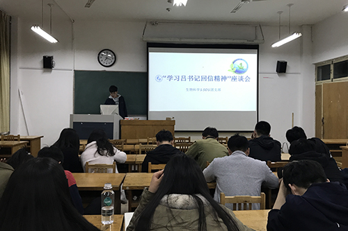 4月19日,生物科学1501团支部在13号教学楼215教室举行“学习吕书记回信精神,争做五有人才排头兵”系列活动。活动分“学习吕书记回信精神”主题团日活动、“学习优秀校友王志良”系列活动及参观校史馆三部分进行。此次活动由团支书吕科梁和班长刘洪洋共同主持,团支部全体同学参加。