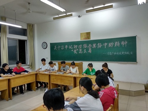 2018年4月20日晚,生命科学学院首届“冯思广班”在13号教学楼221教室举行“关于吕书记的回信与其回信中的精神‘我’怎么看”的团支部座谈会,活动紧紧围绕“学习吕传毅书记的回信精神”展开。此次活动由冯思广班团支书杜盈盈主持,班级全体同学共同参加。