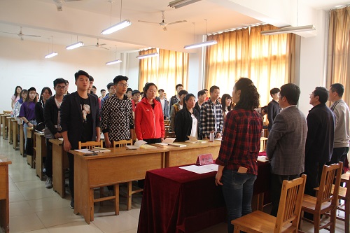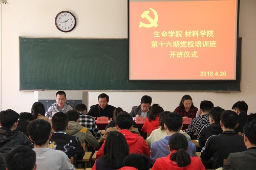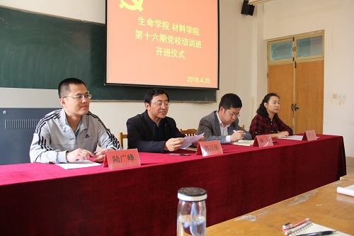 4月26日下午,生命科学学院联合材料科学与工程学院在13号教学楼201教室举行第十六期党课开班仪式。学院党总支书记郭万保、材料科学与工程学院党总支副书记陈沙、学院党总支副书记陆广峰出席活动,团总支书记李兰晶主持,生命科学学院与材料科学与工程学院本科生入党积极分子参加。