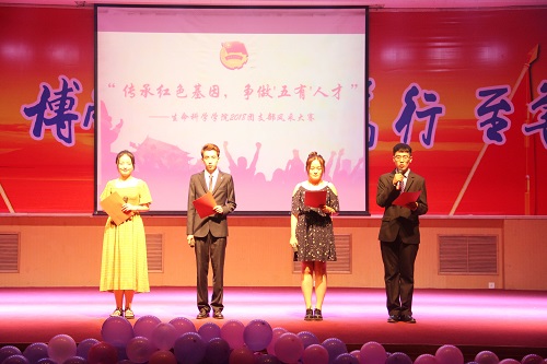 5月17日晚,生命科学学院在3号报告厅举行“传承红色基因,争做‘五有’人才”2017级团支部风采大赛,学院党总支书记郭万保,院长纪洪芳,党总支副书记陆广峰,团总支书记李兰晶,辅导员蒋育忻、翟静涛参加,孔玲、钱绍松、赵倩、桑锋、袁佐清五位学院班级导师担任评委。