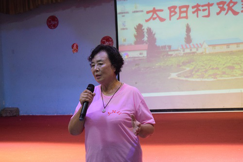 上午十点整,开营仪式正式拉开序幕,此次仪式由太阳村创始人张淑琴主持。首先进行各个阵营之间的检阅,入场式开始,“大学生”学生阵营、外国学生阵营、爱心人士学生阵营以及太阳村学生阵营依次接受检阅。检阅完毕,张奶奶带领众人进入大礼堂。张奶奶首先通过几个宣传视频来展现太阳村的艰难发展历程。她简单介绍自己创建太阳村的由来与太阳村一直以来的“社会企业”运营模式。