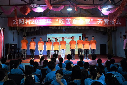 最后,参与夏令营的所有成员上台合唱。“吃苦夏令营”的开营仪式在悠扬的歌声中结束。