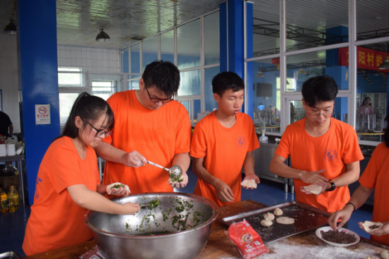 实践团成员在太阳村的小厨房合作包包子