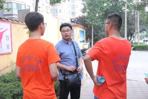 稍作休整后,实践团前往鲁南制药家属住宅区与当地居民进行交流,表明此行目的。此外,在交流过程中,实践团偶遇在鲁南制药集团工作的校友周冰,与其进行深入交流。期间,周冰详细询问团队食宿及日程安排问题,告诫团队成员以安全为前提开展活动,为后期校友交流会的开展奠定基础。