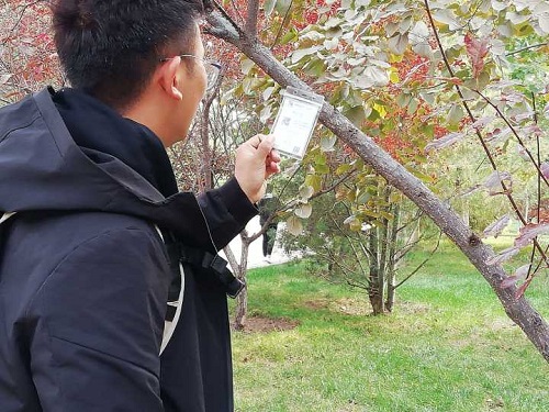当天下午,同学们一起到植物园,参观植物,了解相关知识,并在喜欢的植物上挂上自己制作的名片,希望能和植物共同成长。同时,大家还在植物园和老人们一起聊天,同学们一起交流互动,精神饱满、积极热情,体现出大学生良好的精神风貌。