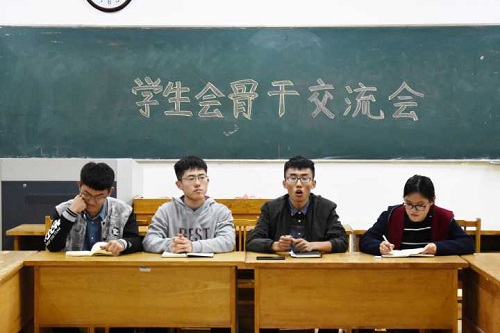 会议伊始,李海峰简要说明此次交流会的目的和意义,并向大二所有的学生会成员提出几点要求。一是学生干部的模范带头作用,大二学生会骨干要以身作则,积极向大一新生传递正能量;二是学生干部的个人能力问题,大家应该从个人工作技巧、个人工作能力以及个人修养等方面,不断提升自己;三是要主动展示自己的能力,担起自身责任,更好的促进部门发展;四是抓住学习,学习是第一要务,身为学生干部更要;五是要起到引导作用,逐步引领大一新成员了解工作流程,对他们的工作要做到认真审核。主席团成员积极发言,对李海峰提出的要求进行补充。他们认为大二是提升能力最快的阶段,希望大家都能够转换想法,站在更高的角度看问题,积极为部门及学生会的发展出谋划策。另外,沈扬扬提出,学生会是一个整体,大家应该互相帮助、互相协作、共同发展、共同进步。