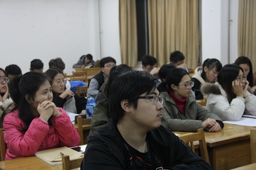 活动伊始,王剑冰进行经验分享讲述提高英语水平方法。她英语作文开始,通过分享模板写作各方面技巧及提升方法,重点引导同学们根据自己的兴趣去下载APP,多听练,介绍阅读理解的方法。另外,她提出,英语过级是对自己全面发展的要求,同学们要明确自己的目标,有毅力。经验分享过程中,同学们积极参与,纷纷提问,王剑冰给予解惑,并留下自己的联系方式,方便同学们课下进行交流。