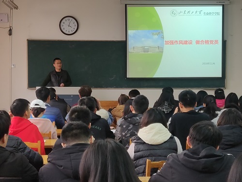 11月22日下午,生命科学学院在13号教学楼201教室举行“加强作风建设,做合格党员”主题党课。党课由学院党总支副书记陆广峰主讲,学院研究生党支部、本科生党支部全体党员及部分入党积极分子参加。