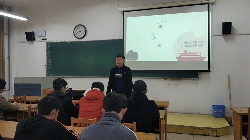 12月5日上午,学院生物工程1701团支部在13号教学楼开展以“我是团员我光荣“为主题的团日活动。此次活动特邀请2017级辅导员李超,该支部全体成员共同参加。