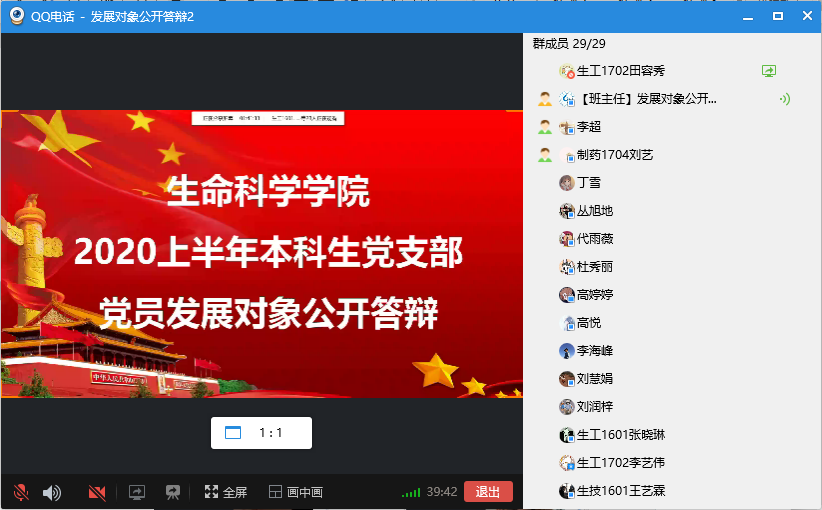 5月17日下午,生命科学学院本科生党支部召开线上2020年上半年党员发展对象答辩会,答辩会由生命科学学院本科生党支部书记蒋育忻同志主持,该支部全体党员及发现对象参与此次会议。