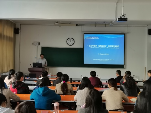 10月17日上午,生命科学学院举行学术报告会和国家基金项目申报辅导报告会,苏州大学秦樾教授和张文胜教授应邀来我校做报告。全校部分教师和研究生参加。学院副院长(主持工作)庞秋香教授主持本次报告会,对张文胜和秦樾两位教授做了简要介绍并表示热烈欢迎。