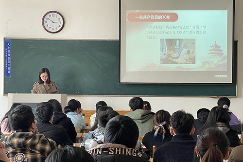 随后,党员发展对象黄穆杰、付林以及入党积极分子李丹萍、孙喆、杨竞文依次带领大家进行学习。